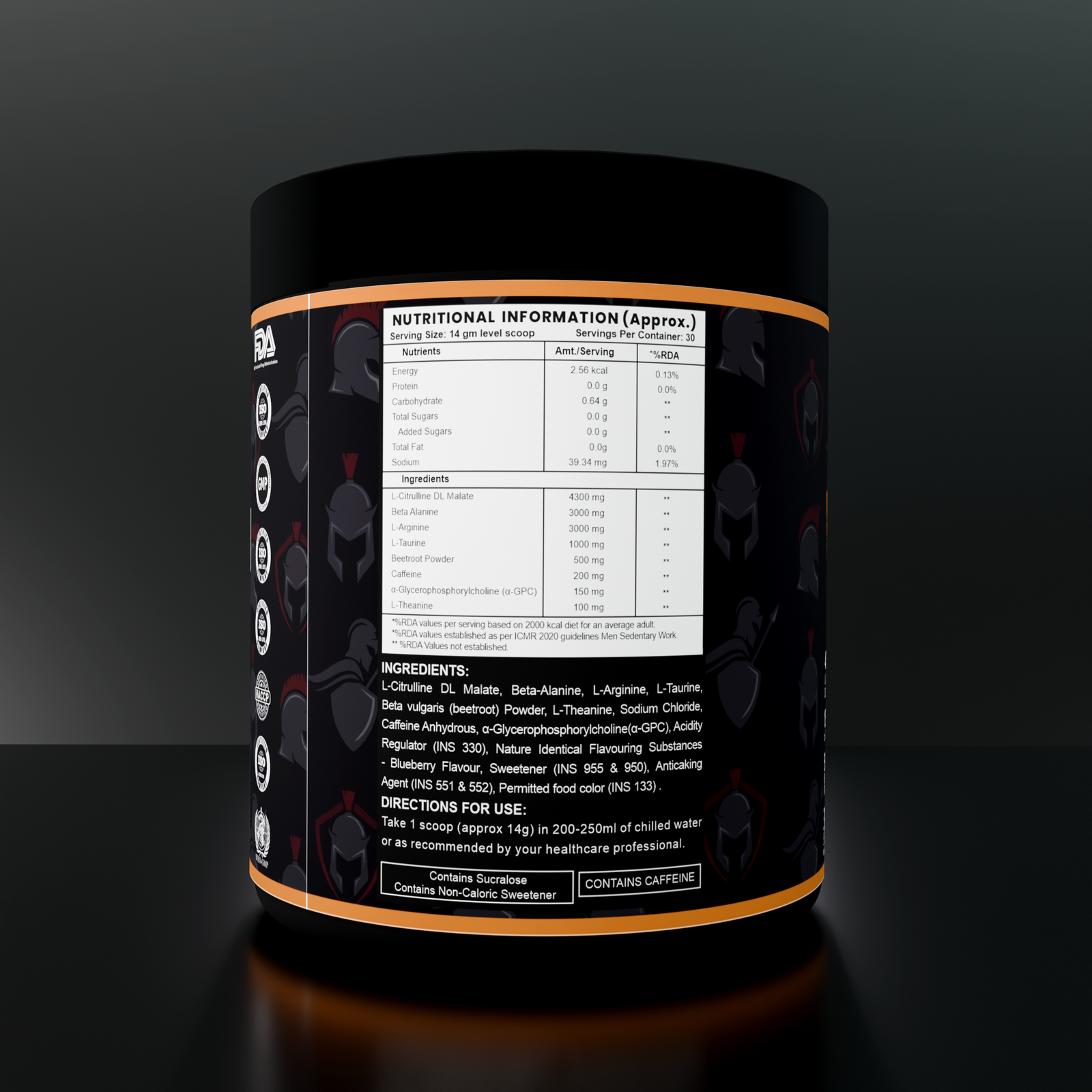 4300mg Citrulline • 3000mg Beta-Alanine • 200mg Caffeine • 30 Servings • Blueberry